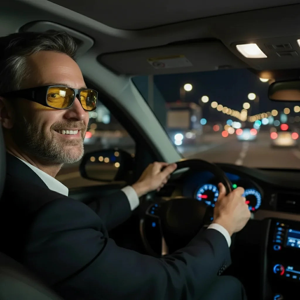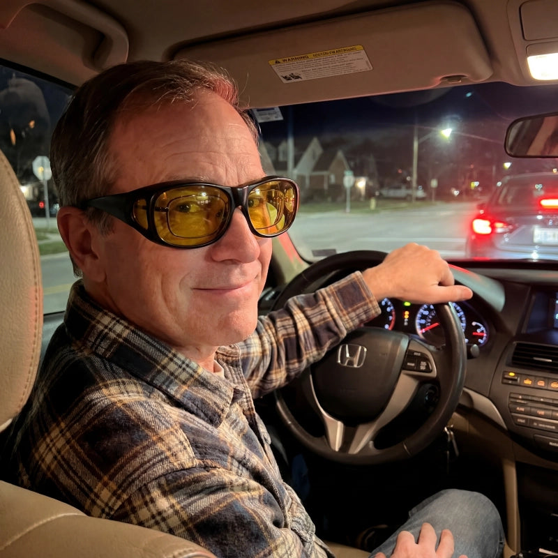 Imagine driving at night without the blinding glare from headlights or the fuzzy blur of dark roads. Our night vision driving glasses cut through the chaos, giving you crystal-clear visibility and sharply defined details. You'll feel safer, more confident, and completely in control, turning stressful commutes into calm, clear journeys. Plus, they fit right over your existing glasses, so clarity is always a comfortable grab away. Stop squinting, start seeing.